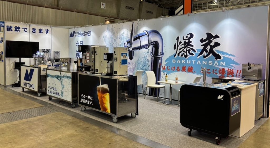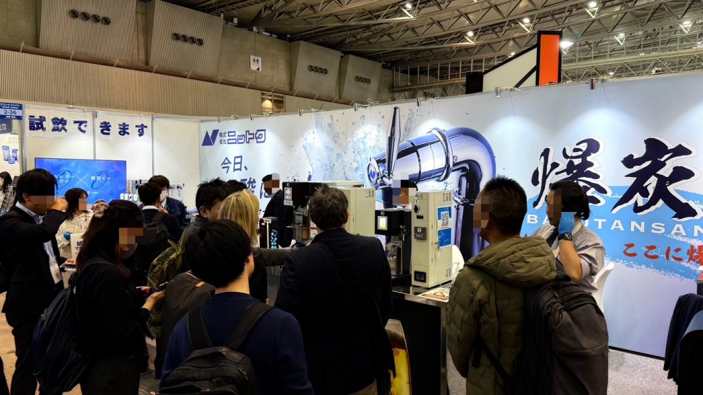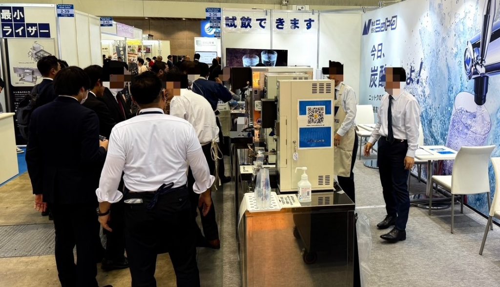 そして“ニットクの強炭酸水”を多くのご来場者様に体感していただけるように試飲コーナーがメインのブース作りとなりました。